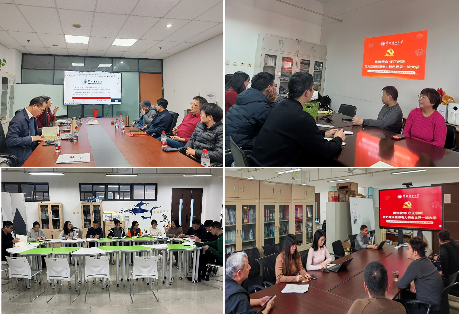 办公室党支部书记张冬月老师组织专题学习,支部4名成员参与党代会开幕式,现场聆听了报告内容。大家积极分享参会感悟和学习心得,力争把大会精神全面深入传达,支部成员围绕下一阶段如何与时俱进落实立德树人、深入推进“双一流”建设中“华电何为、能动何为、你我何为”等问题展开热烈讨论。